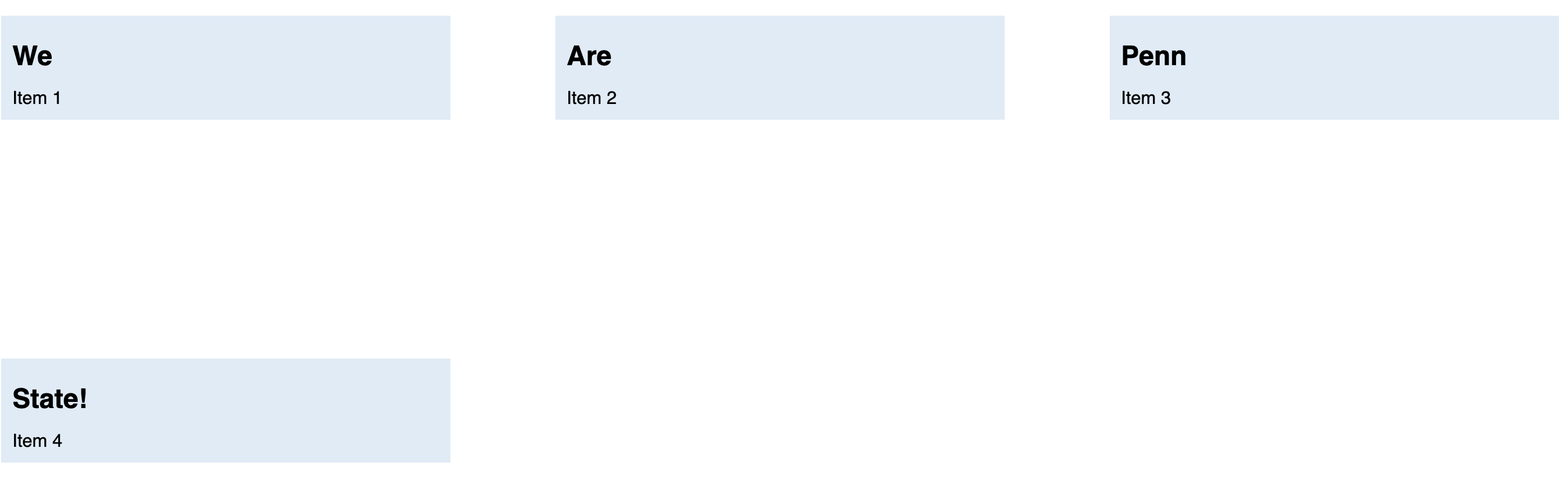 - Each item should be at least 150px wide