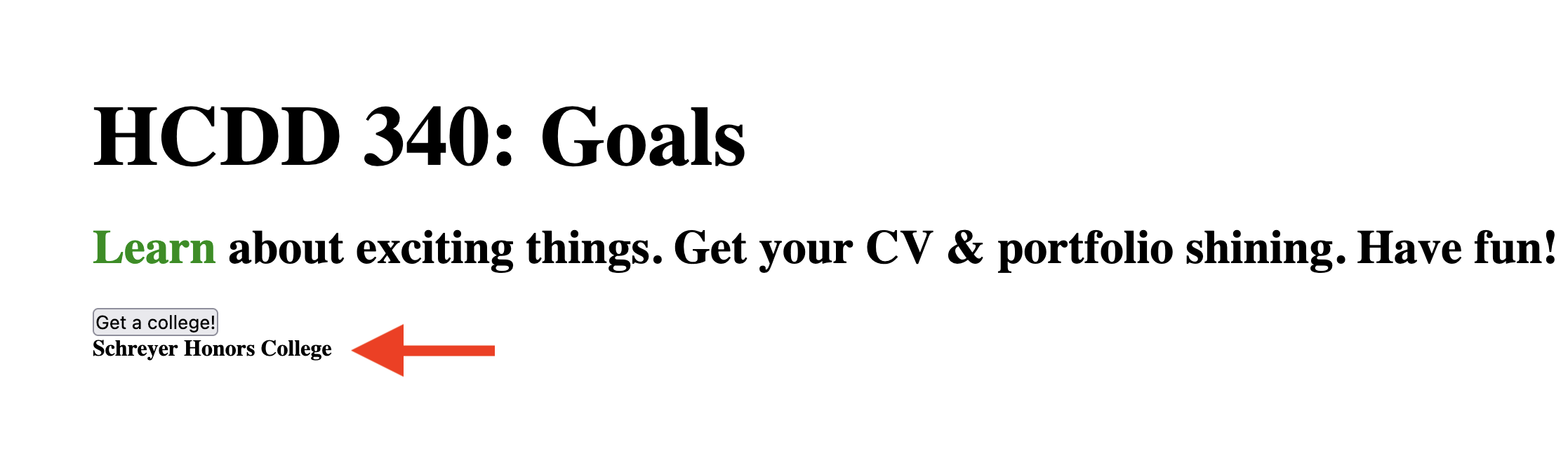 colleges<h4> with the selected itemsconst button = document.querySelector("button");
